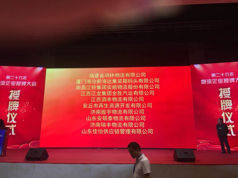 2018年9月16日,由中國(guó)物流與采購(gòu)聯(lián)合會(huì)主辦的A級(jí)物流企業(yè)授牌大會(huì)暨物流業(yè)創(chuàng)新發(fā)展論壇在吉林省長(zhǎng)春市隆重舉行。會(huì)議對(duì)本批A級(jí)物流企業(yè)進(jìn)行了集中授牌,濟(jì)南振宇物流有限公司榮獲國(guó)家AAAA級(jí)物流企業(yè),總經(jīng)理張憲振代表公司出席會(huì)議并接受授牌。