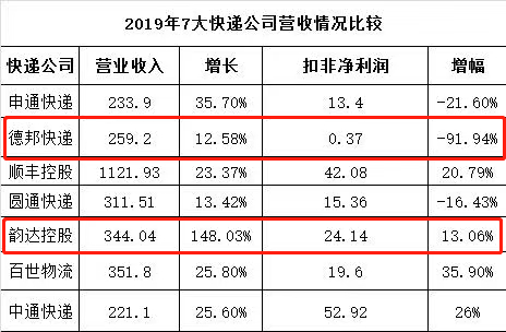而根據(jù)德邦股份發(fā)布了2019年業(yè)績報告,2019年實現(xiàn)營業(yè)收入259.22億元,同比增長12.58%;實現(xiàn)歸屬上市公司股東凈利潤3.24億元,同比下滑53.82%。扣非凈利潤下降-91.94%。在虧損的邊緣徘徊。