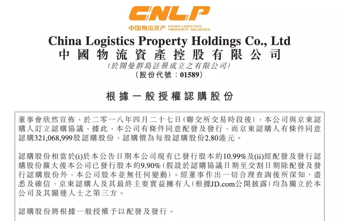 中國物流資產(chǎn)控股有限公司近日宣布,已與京東認(rèn)購人訂立股份認(rèn)購協(xié)議,京東認(rèn)購人為JD.com, Inc.子公司。